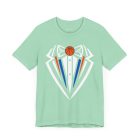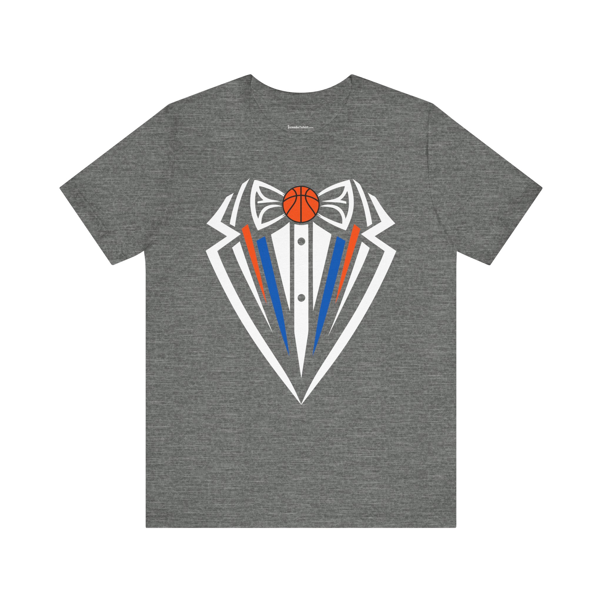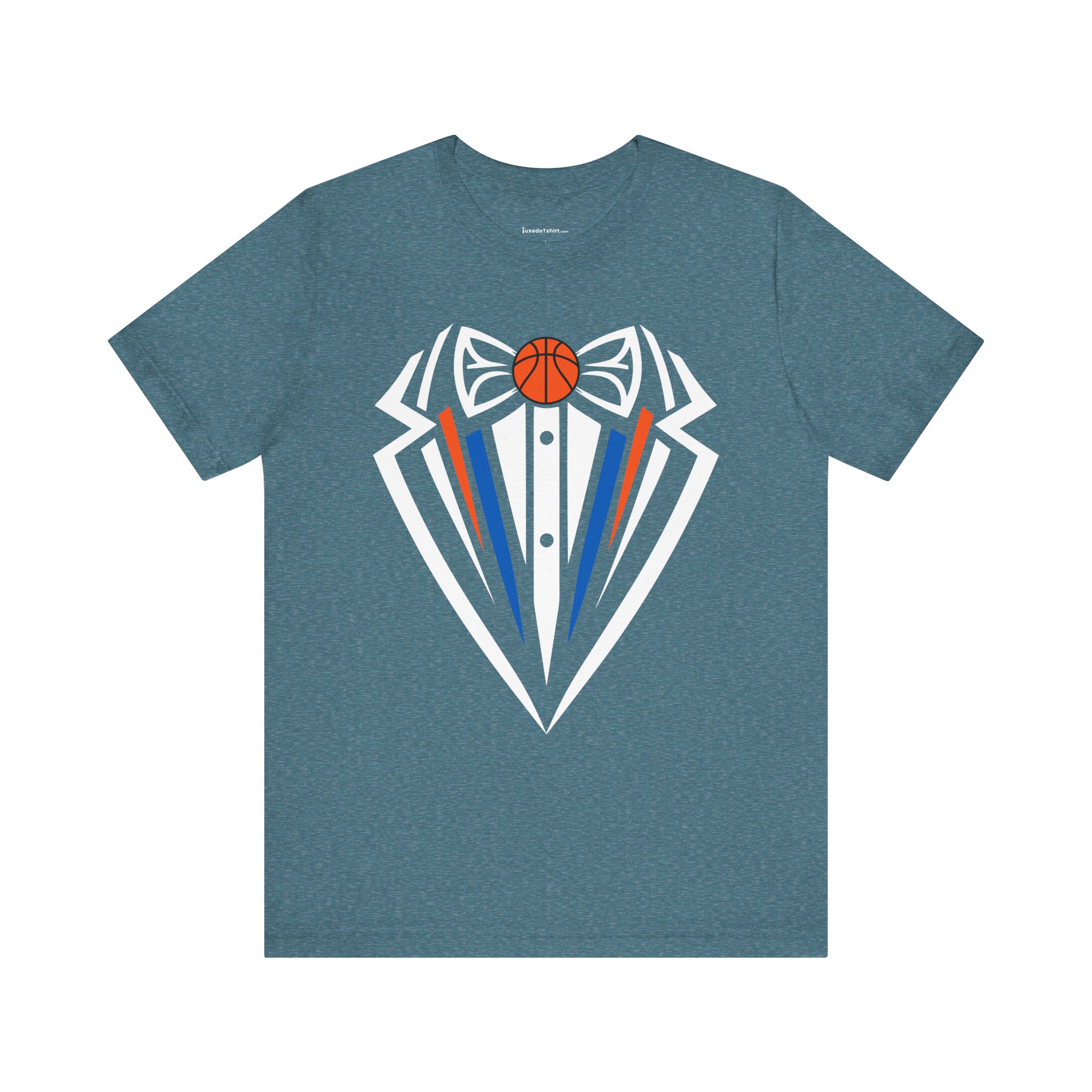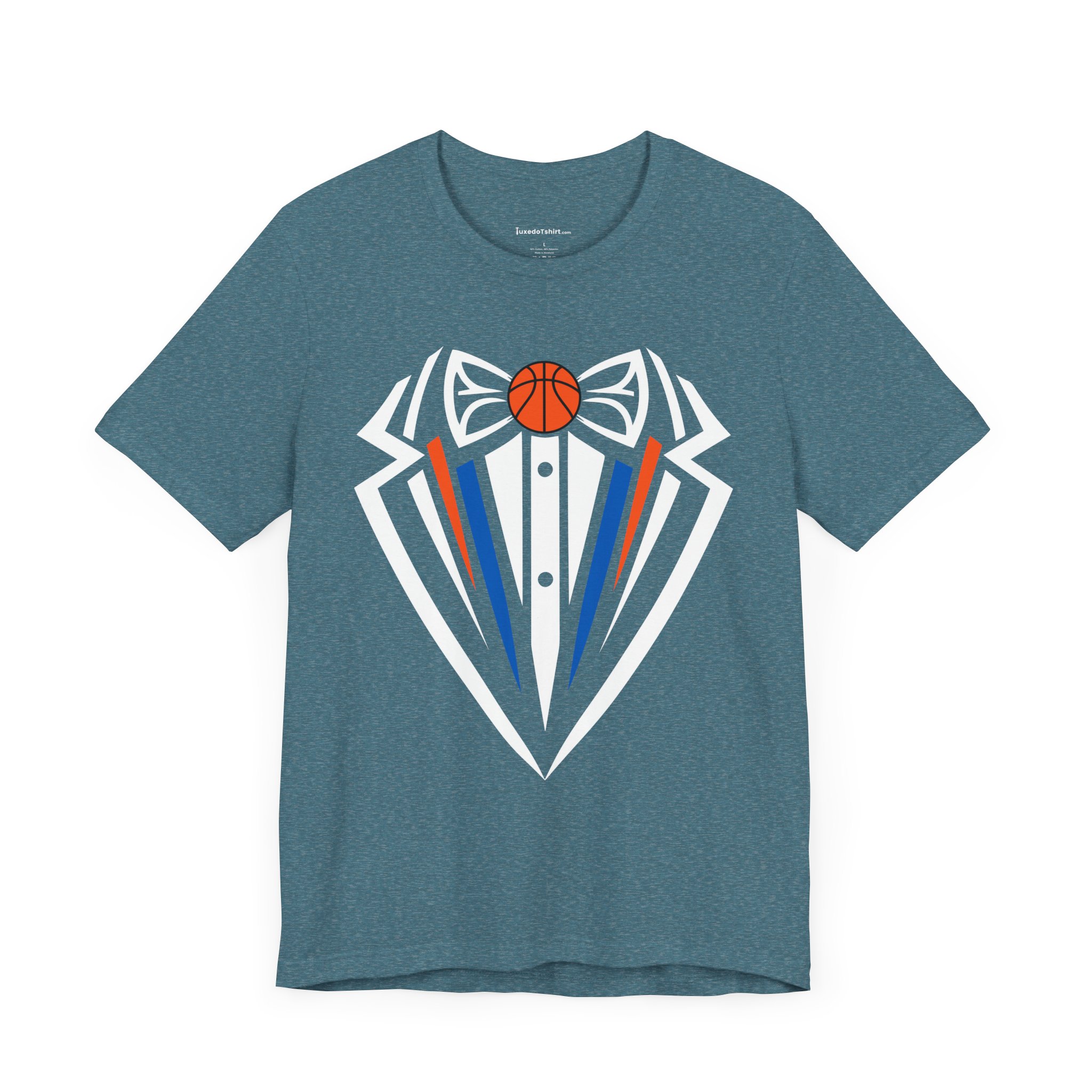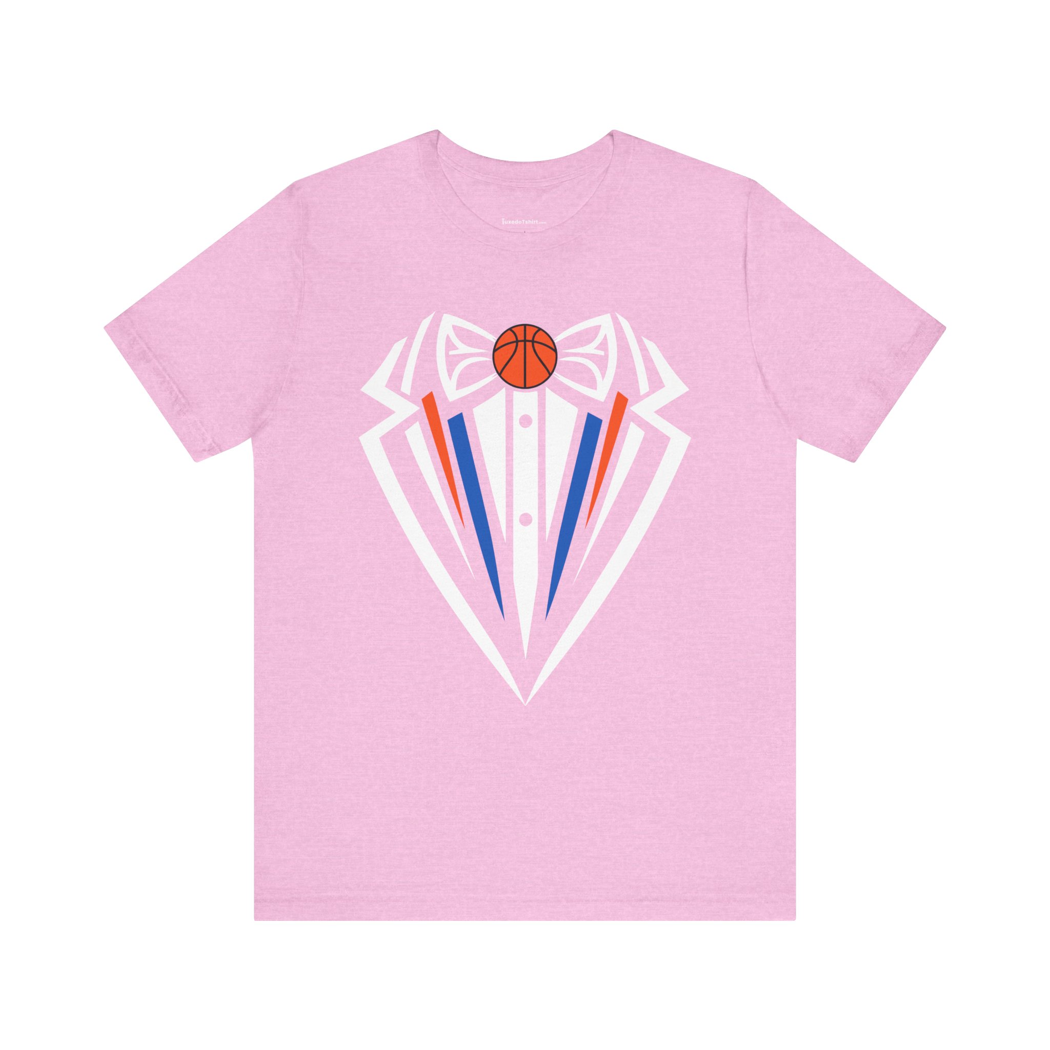 This Basketball Tuxedo T-shirt is perfect for dressing up a basketball game. It gives a fun and stylish vibe, suitable for sports enthusiasts looking to show off their love for basketball. Ideal for adults and can be worn during basketball games, sports events, casual gatherings, and fan parties.