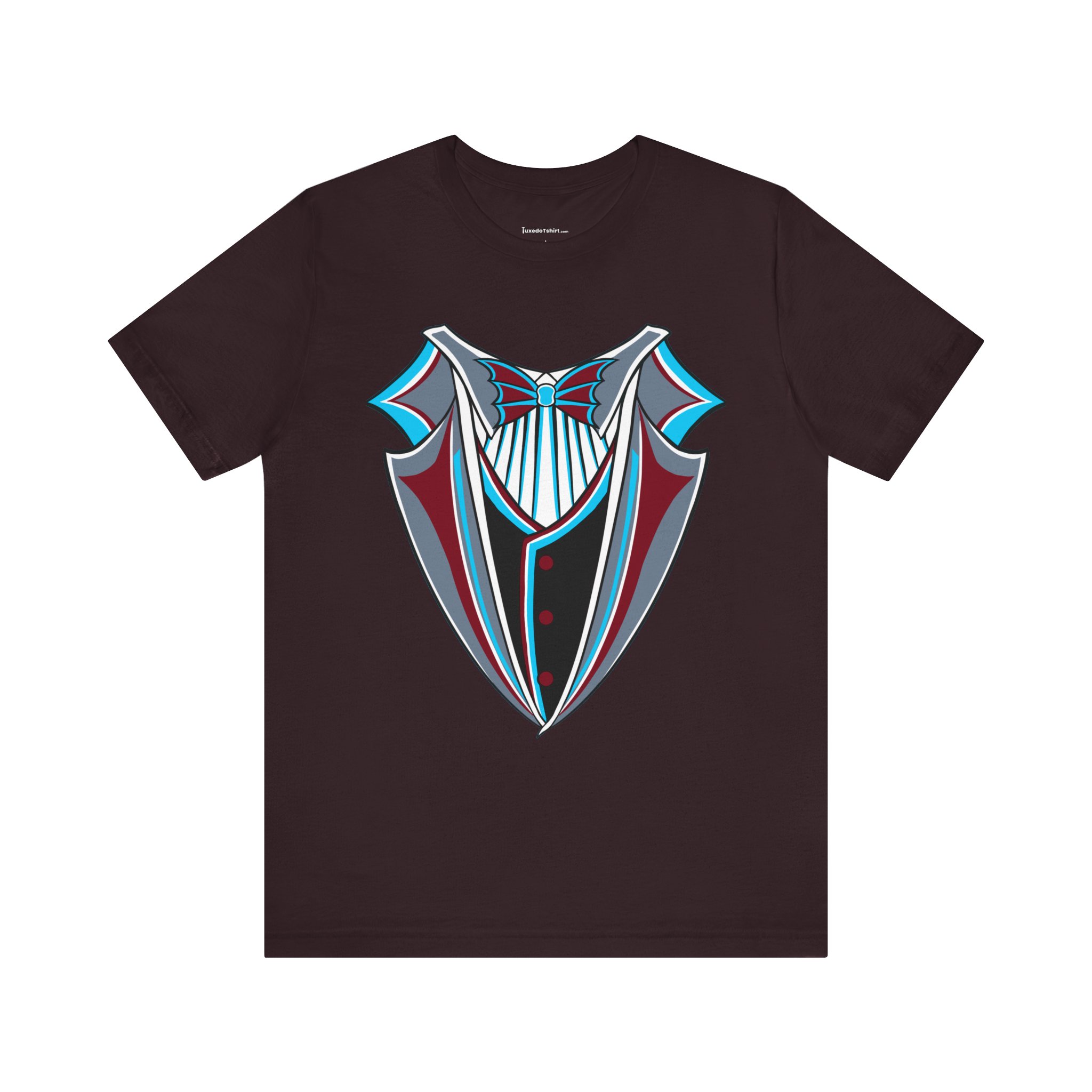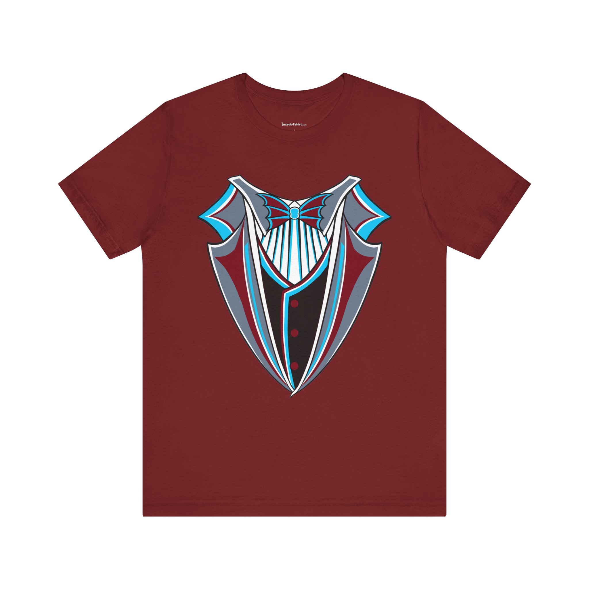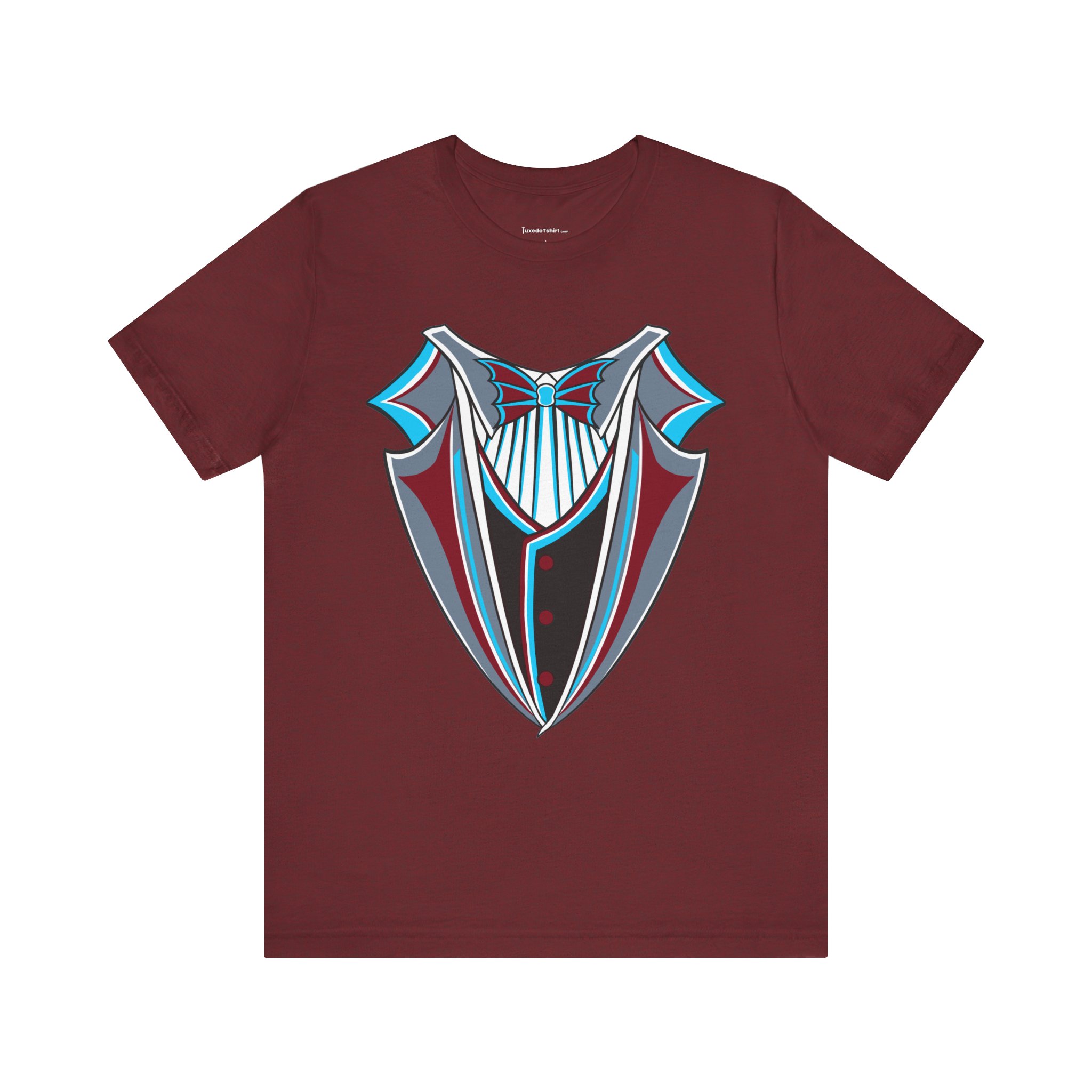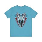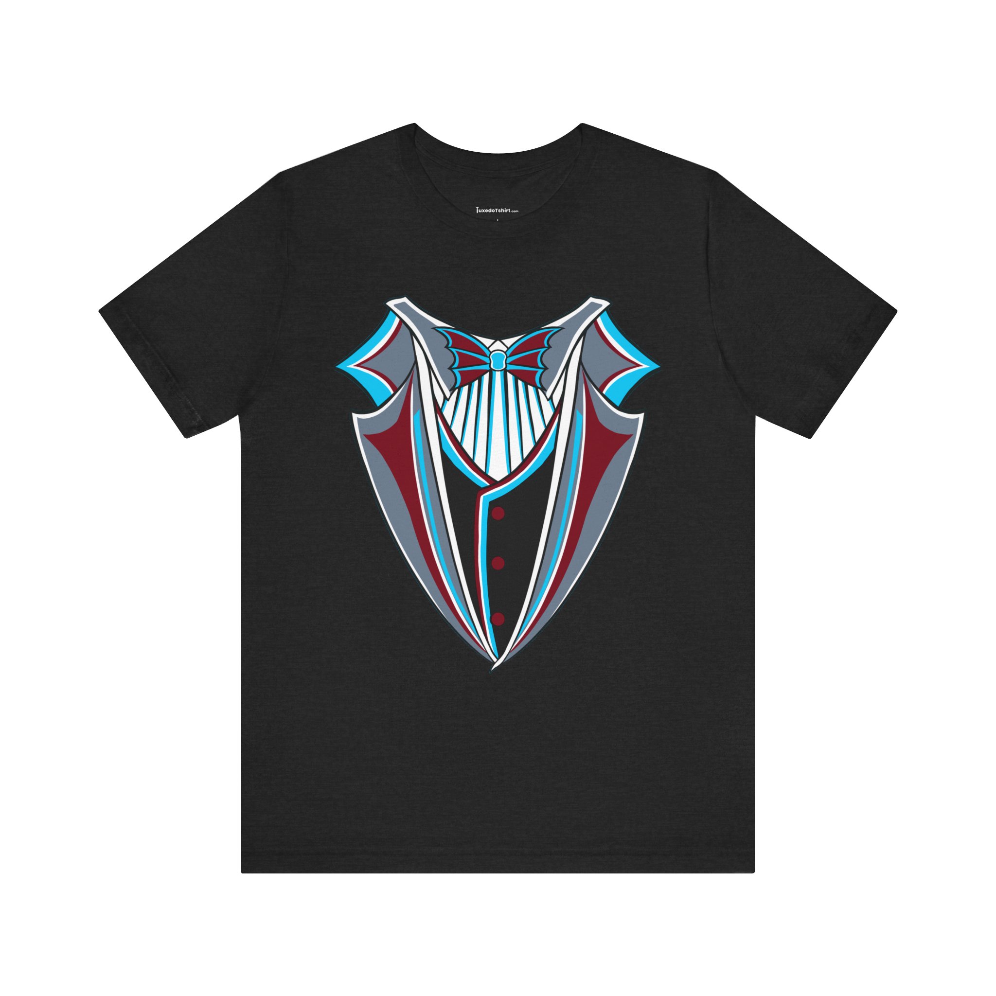 Miami Baseball Tuxedo TShirt in Miami Blue & Black. Bring the South Florida vibe with this Magic City novelty tuxedo tee! Perfect for game day in Miami, tailgating, or showing your SoFla baseball spirit. Features sleek black lapels trimmed with vibrant Miami Blue (teal/aqua), a striking Caliente Red bowtie, and cool slate gray details on the crisp white shirt front. A great gift for any Miami baseball fan looking for unique, fun fan gear with tropical flair. Available on Black, White, or Miami Blue (teal/aqua) t-shirts.