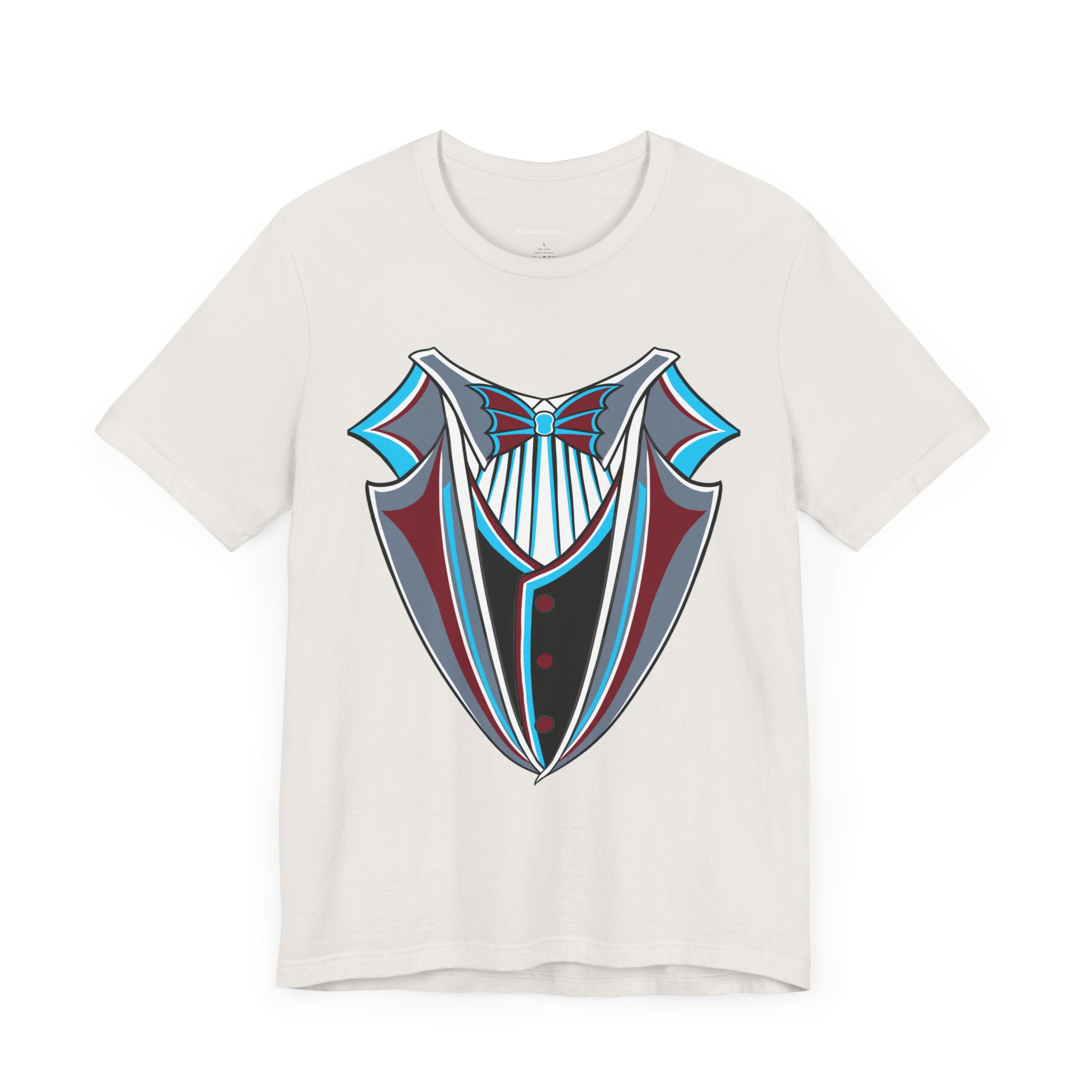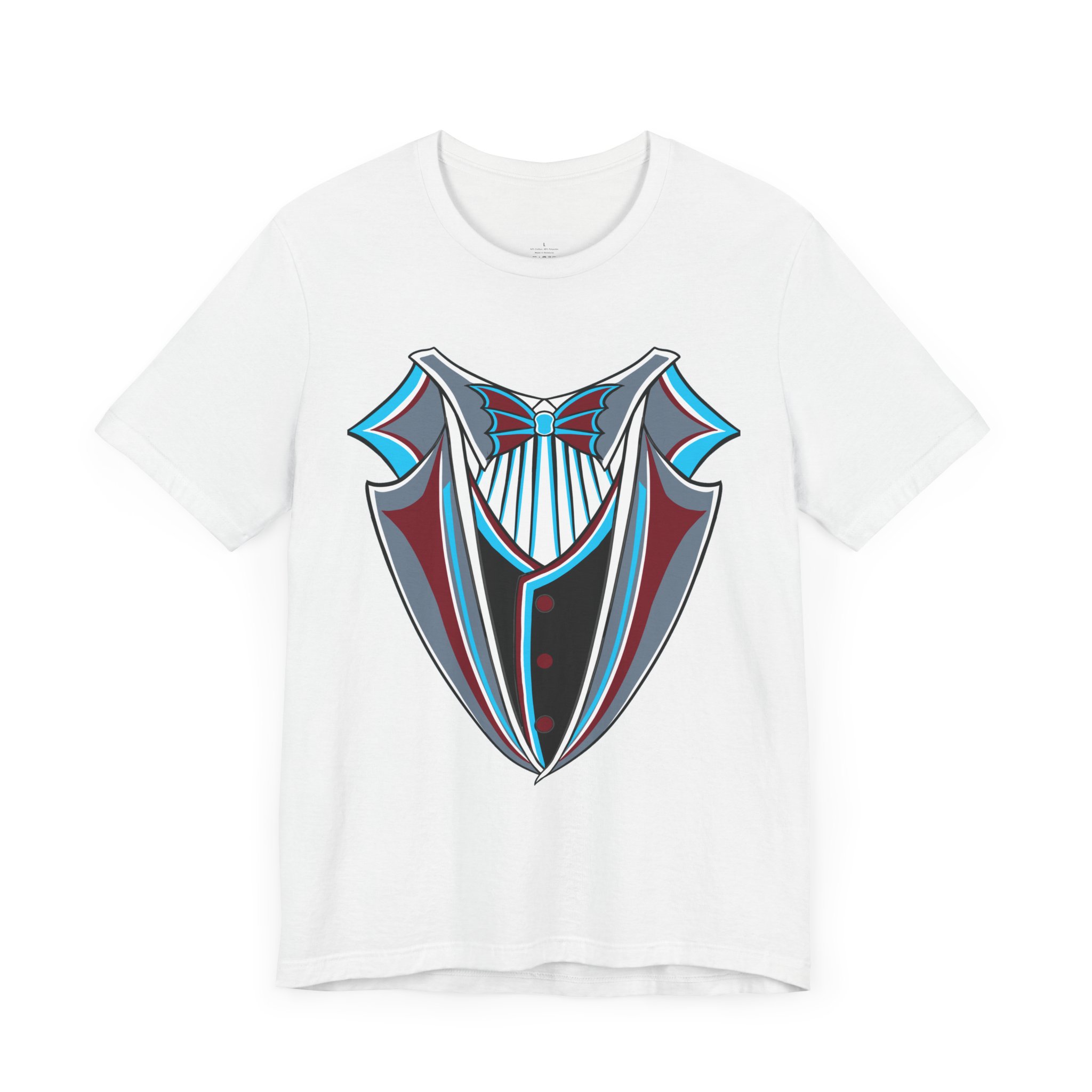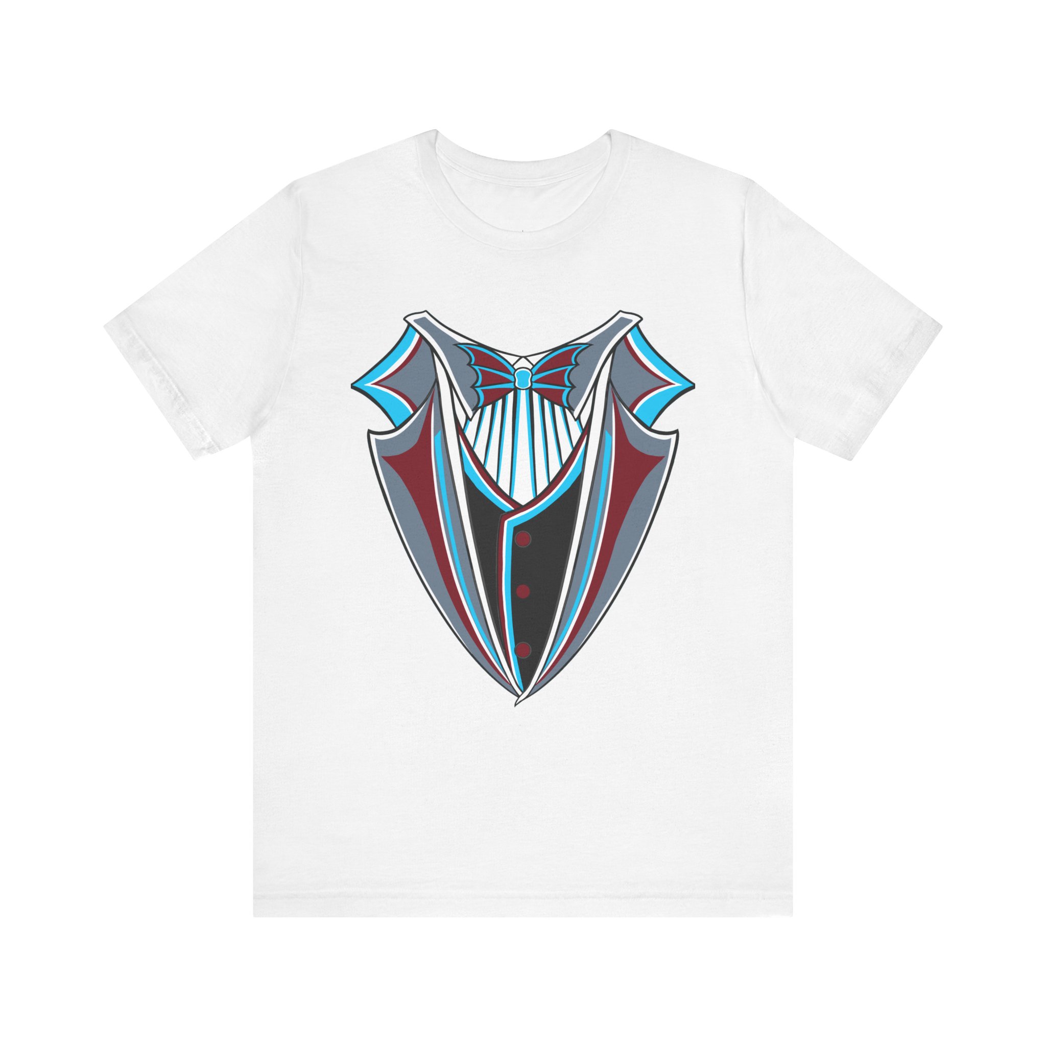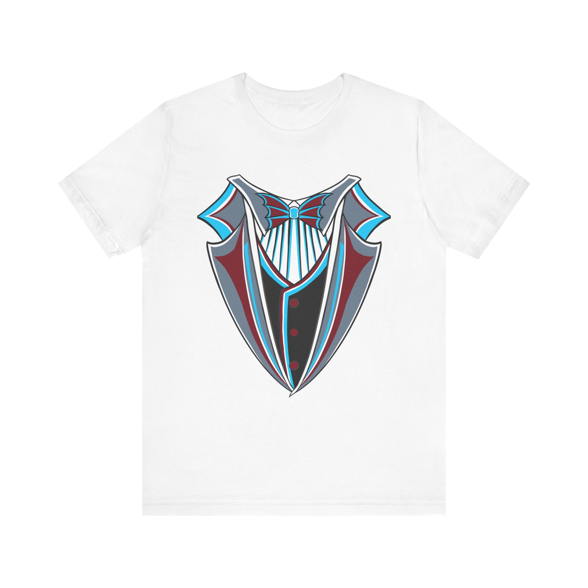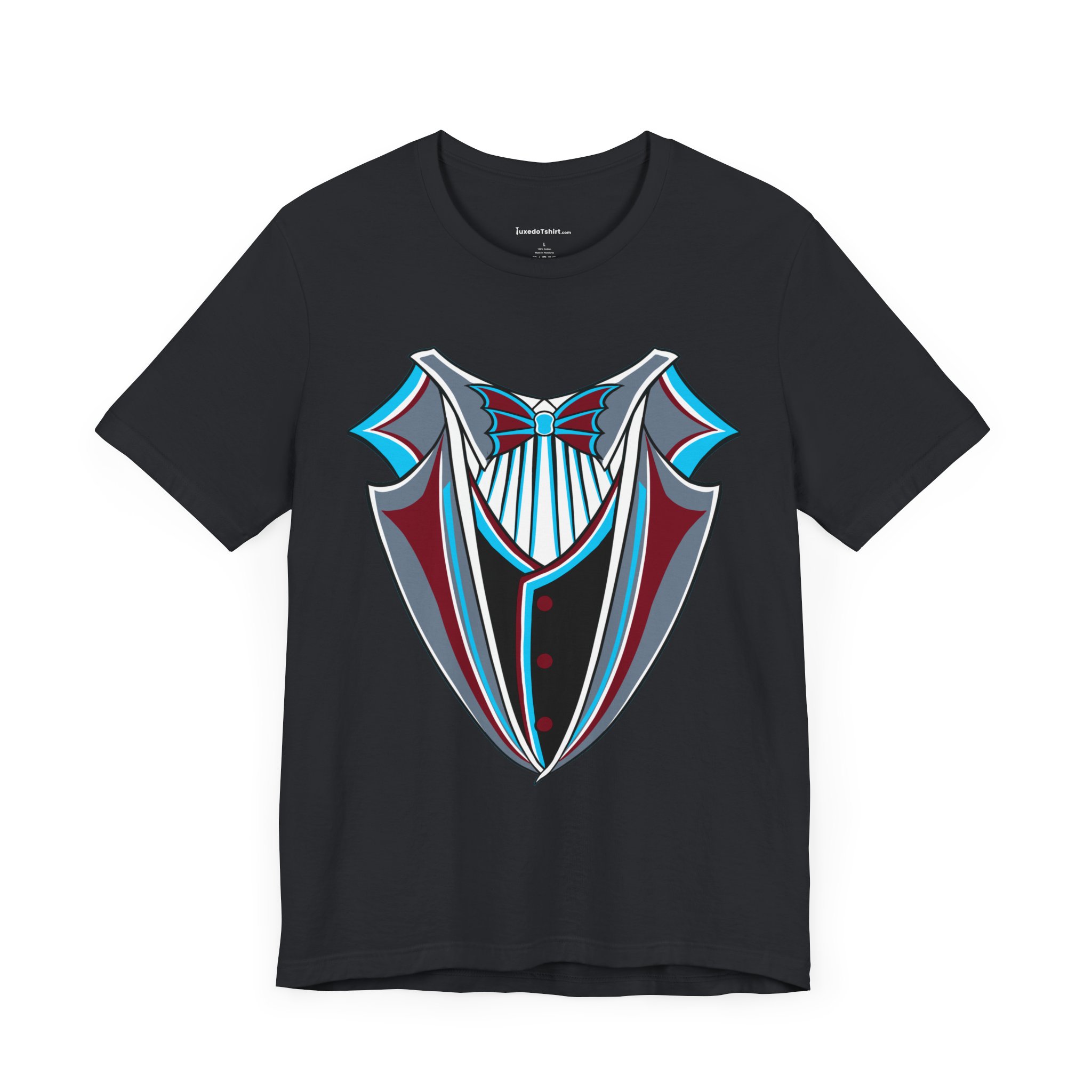 Miami Baseball Tuxedo TShirt in Miami Blue & Black. Bring the South Florida vibe with this Magic City novelty tuxedo tee! Perfect for game day in Miami, tailgating, or showing your SoFla baseball spirit. Features sleek black lapels trimmed with vibrant Miami Blue (teal/aqua), a striking Caliente Red bowtie, and cool slate gray details on the crisp white shirt front. A great gift for any Miami baseball fan looking for unique, fun fan gear with tropical flair. Available on Black, White, or Miami Blue (teal/aqua) t-shirts.